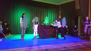 Mit SchülerInnen einer DaZ Klasse wird ein Theaterstück einstudiert.